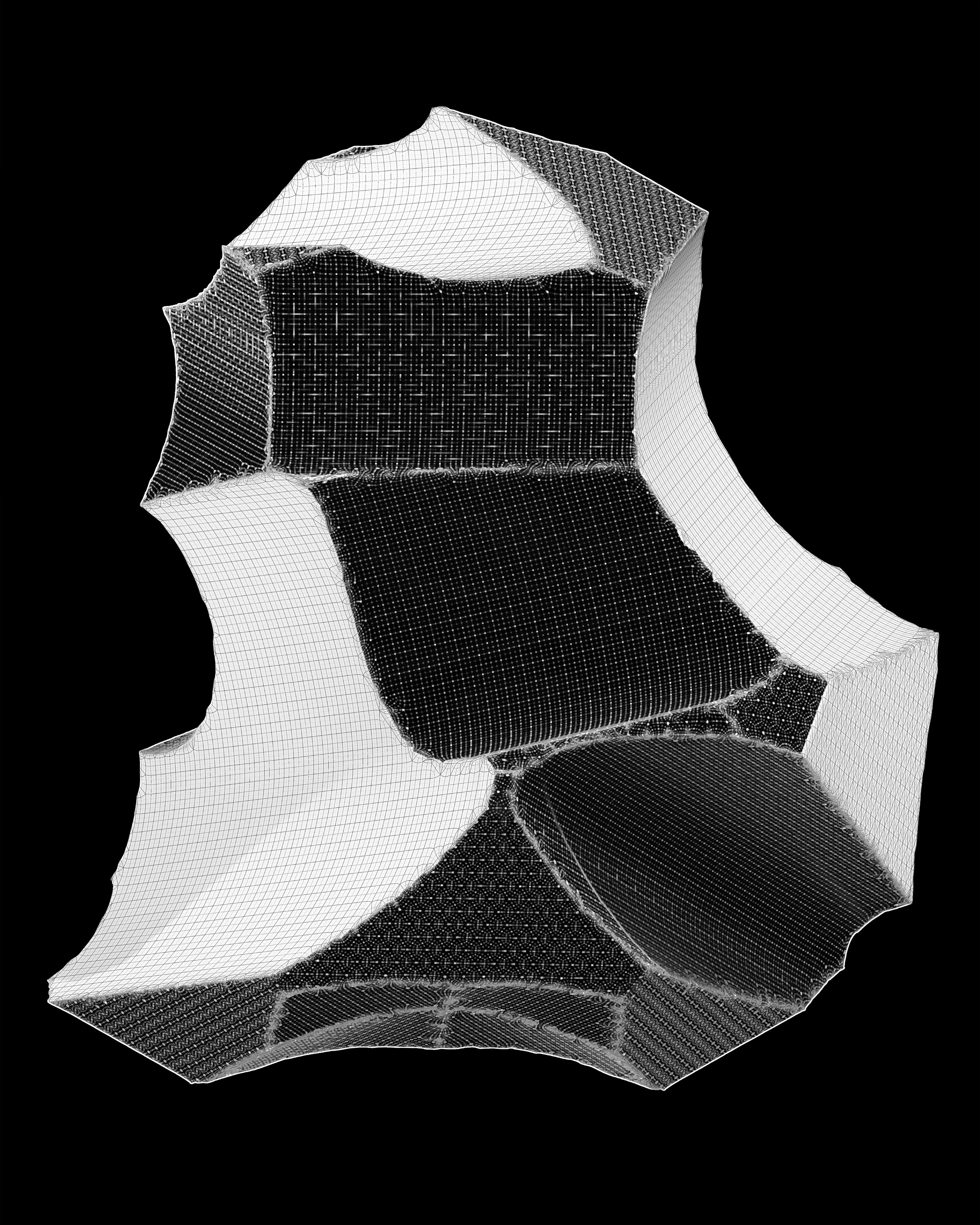 나는 이 괴리를 시각화하기 위해 카메라가 포착한 단면의 사진을 3D 데이터의 좌표로 해체하고, 그 과정에서 발생하는 디지털 오류와 파편들을 가감 없이 드러낸다.